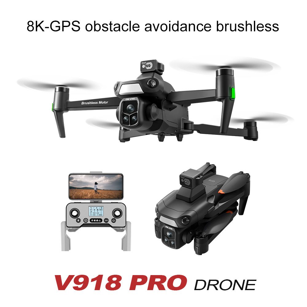 V918 har en avancerad 4K HD-kamera som garanterar exceptionell bildkvalitet för flygfotografering och videofilmning. Med en räckvidd på upp till 3 kilometer erbjuder den GPS-styrd flygning, vilket möjliggör precis manövrerbarhet och positionering. Drönaren är utrustad med ett 360° laserbaserat system för att undvika hinder och använder GPS tillsammans med optisk flödesdubbla lägen för ökad stabilitet och säkerhet. Ytterligare funktioner inkluderar intelligenta returalternativ, som gör att drönaren automatiskt kan återvända vid låg batterinivå eller signalförlust.