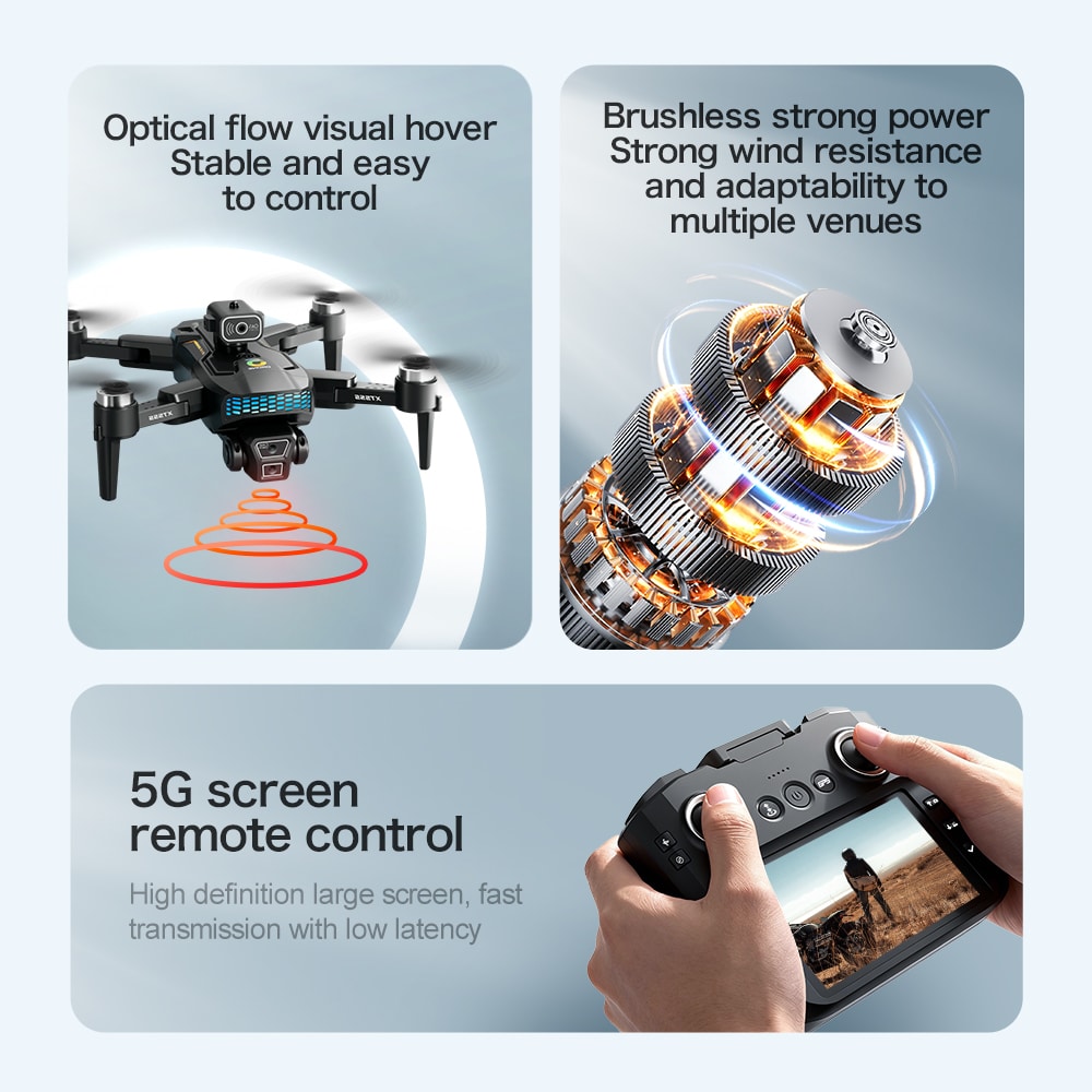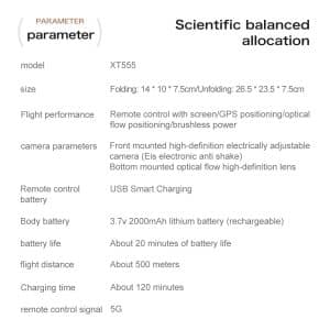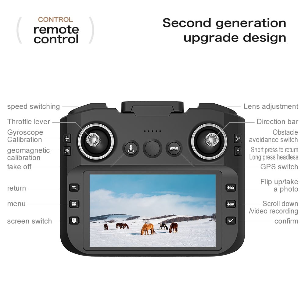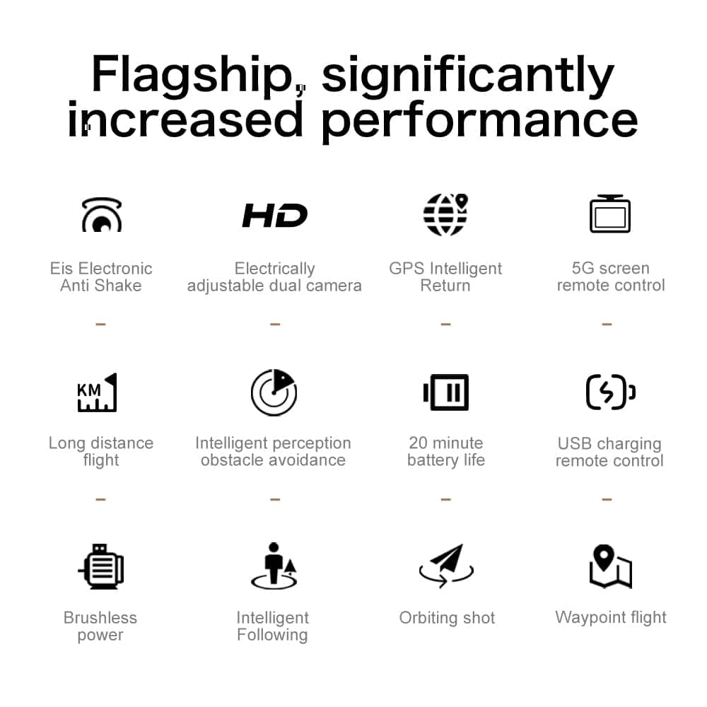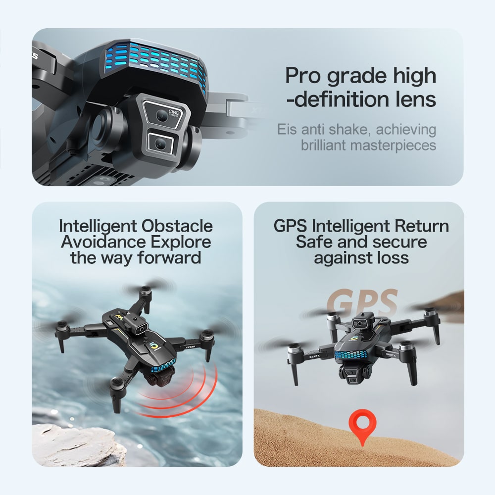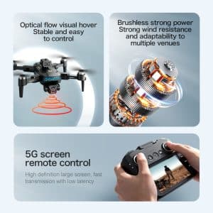 Denna medelstora hopfällbara drönare integrerar 5G- och Wi-Fi-överföring för professionell flygfotografering. Den har ett dubbelt kamerasystem med ett vidvinkelobjektiv framtill och en optisk flödeskamera undertill för precis positionering, båda stabiliserade av en servogimbal och EIS. Fjärrkontrollen har en stor 4,3-tums skärm för HD-video i realtid. Med GPS möjliggör den exakta återvändningsfunktioner med ett enda knapptryck. Ett 2000 mAh-batteri ger cirka 20 minuters flygtid. Smarta funktioner inkluderar waypoint-planering, följ-mig-läge och geststyrning. Dess optiska sensorer för att undvika hinder garanterar säkerheten, medan den lätta designen på 192 g gör att den undantas från många registreringskrav, vilket ger både kraft och bärbarhet.