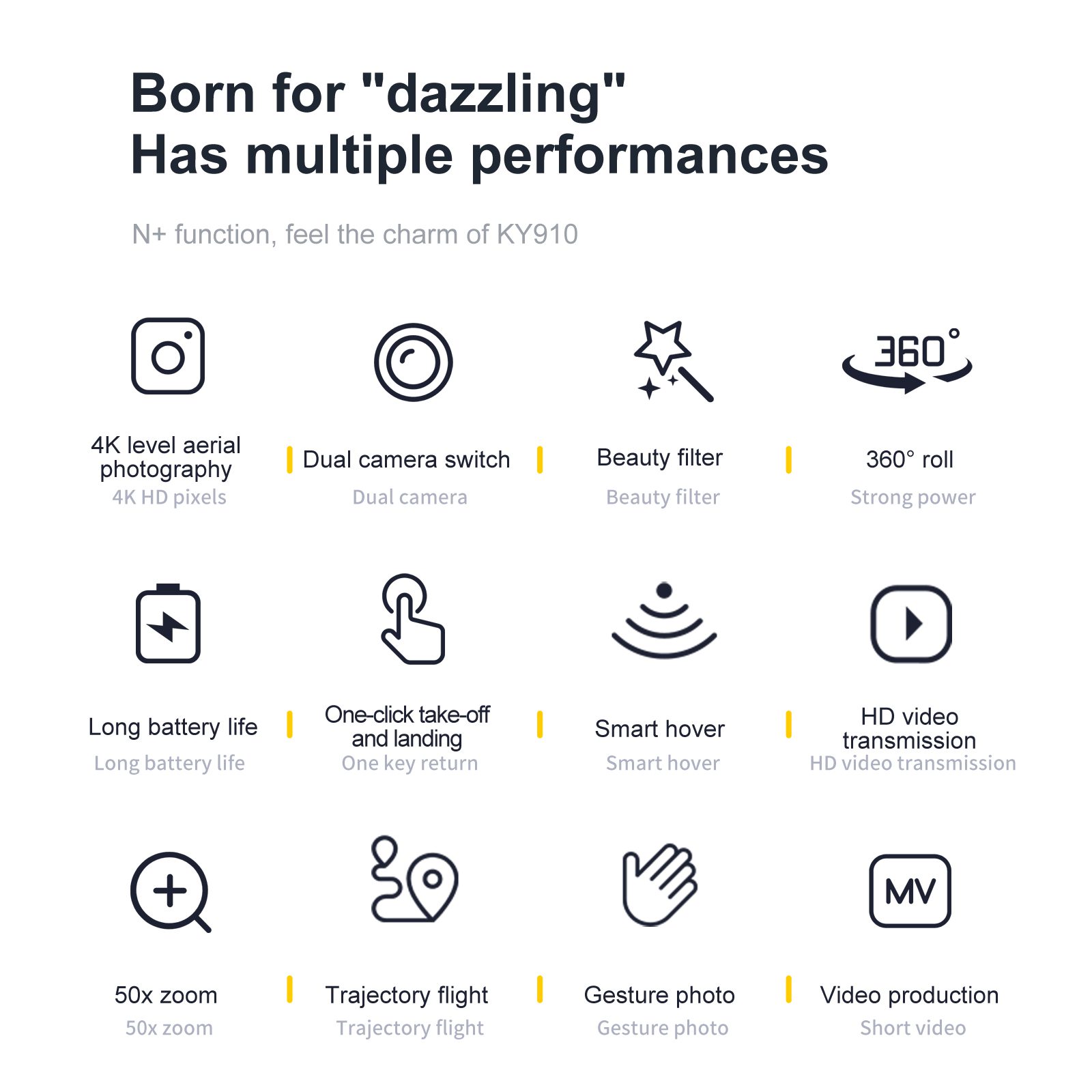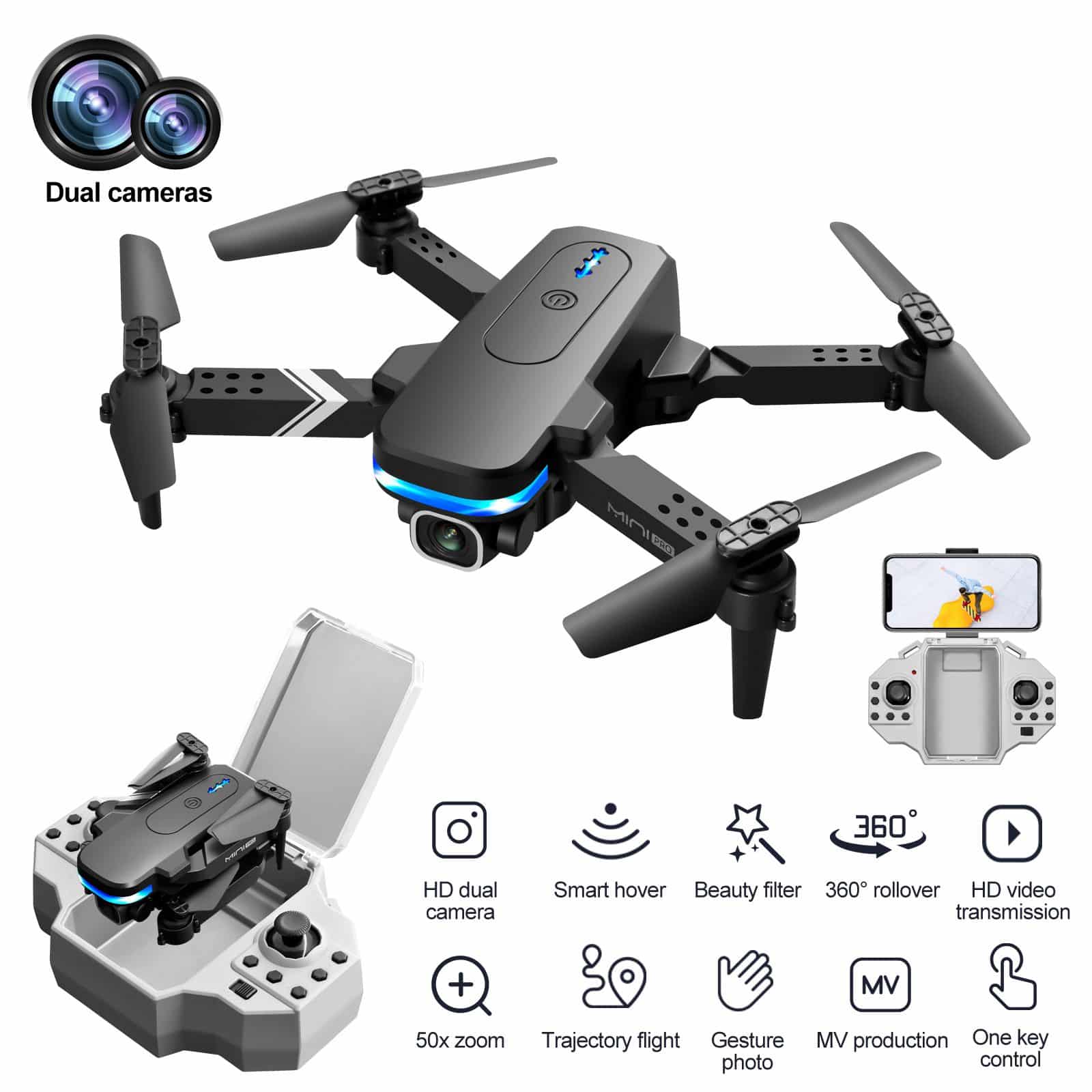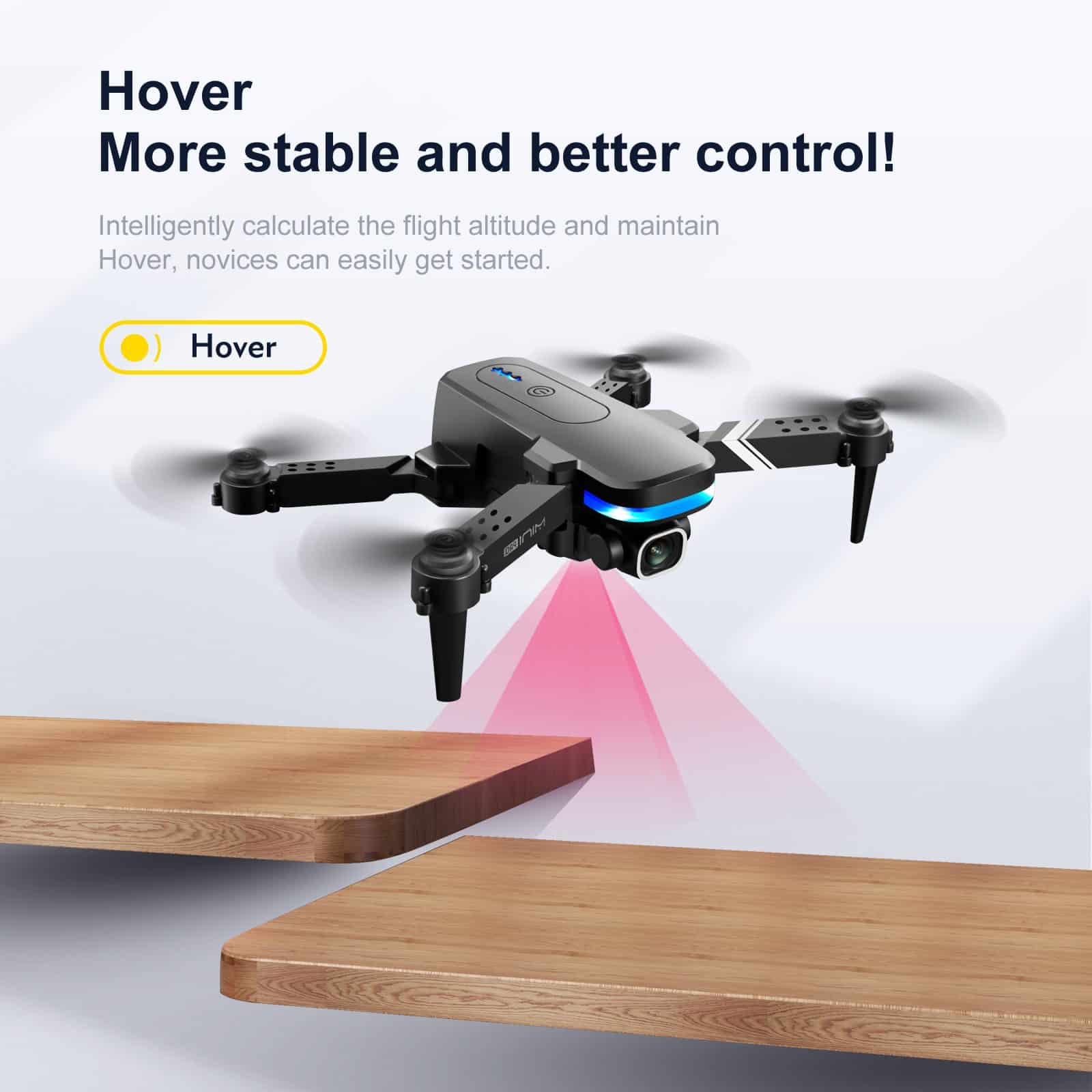 KY910 är en kompakt och användarvänlig minidrone som är utformad för nybörjare och inomhusflygning. Dess viktigaste funktion är visuell positionering med optisk flödesavkänning, som använder både högupplösta linser fram och undertill för att möjliggöra stabil svävning och exakt höjdhållning. Den främre kameran kan justeras manuellt i 15° vinkel, vilket möjliggör flexibel inramning från olika vinklar. Detta intuitiva system gör driften mycket enkel och ger nya piloter ökat självförtroende. Med sin betoning på stabilitet, användarvänlighet och bärbarhet är KY910 en utmärkt introduktionsdrönare och en perfekt present till blivande flygintresserade.