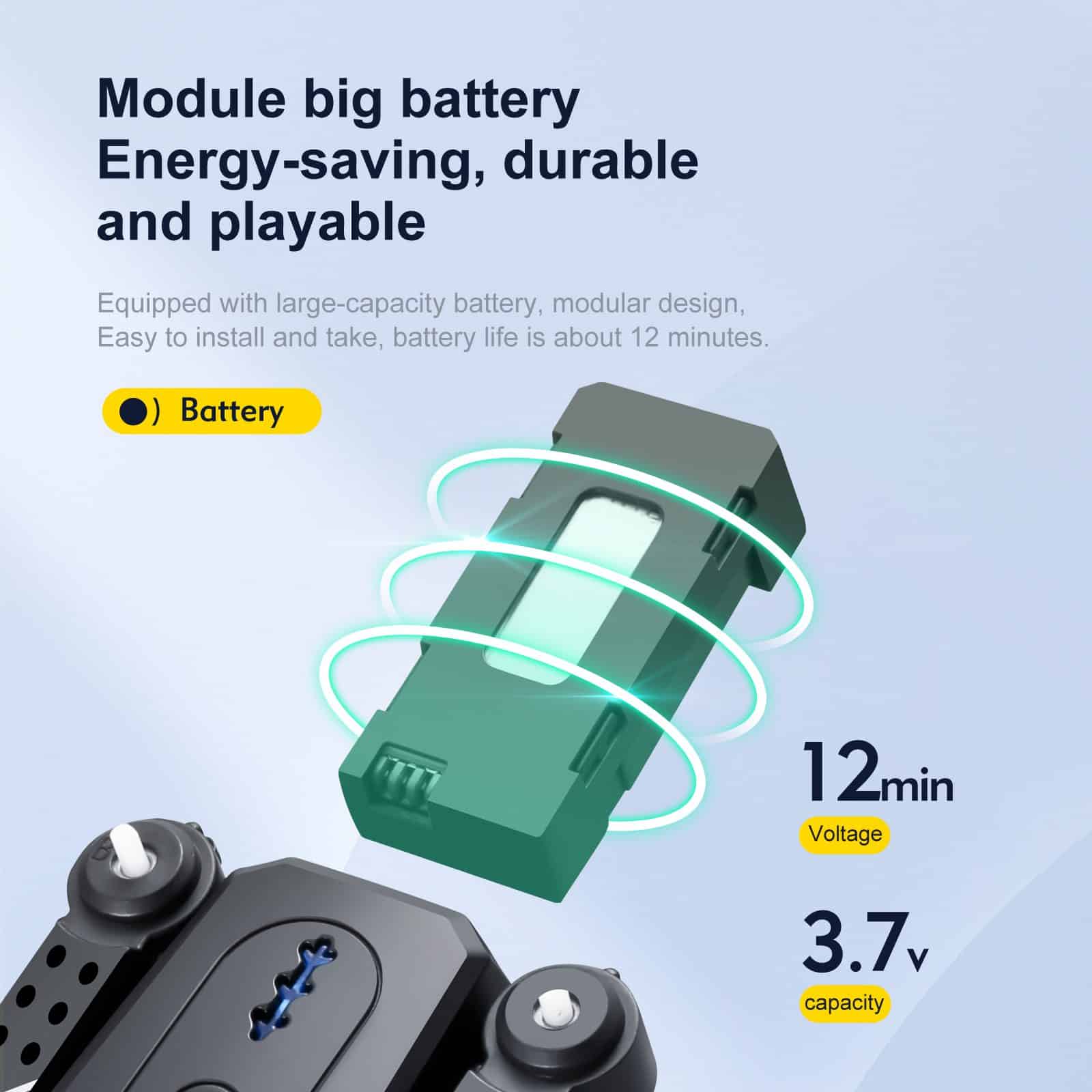 • Uthållighet: Cirka 12 minuters batteritid