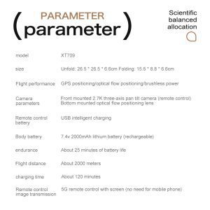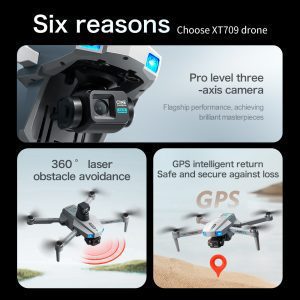 Den professionella GPS-drönaren XT709 är konstruerad för prestanda med utökad räckvidd, med en robust flygräckvidd på 3 km och stabil 5G-bildöverföring i realtid till sin 4,5-tums HD-fjärrskärm. Dess 3-axliga EIS-gimbal garanterar exceptionellt smidiga 4K-bilder. Med hjälp av precis GPS och optisk flödespositionering i dubbla lägen garanterar drönaren stabil flygning och exakt svävning. Det intelligenta säkerhetssystemet inkluderar laserbaserad hinderundvikelse och automatiska återvändningsfunktioner vid låg batterinivå, signalförlust eller för stort avstånd. Med professionella funktioner som Follow-, Surround- och Point-of-Interest-lägen är den utformad för avancerad flygfotografering och pålitlig drift.