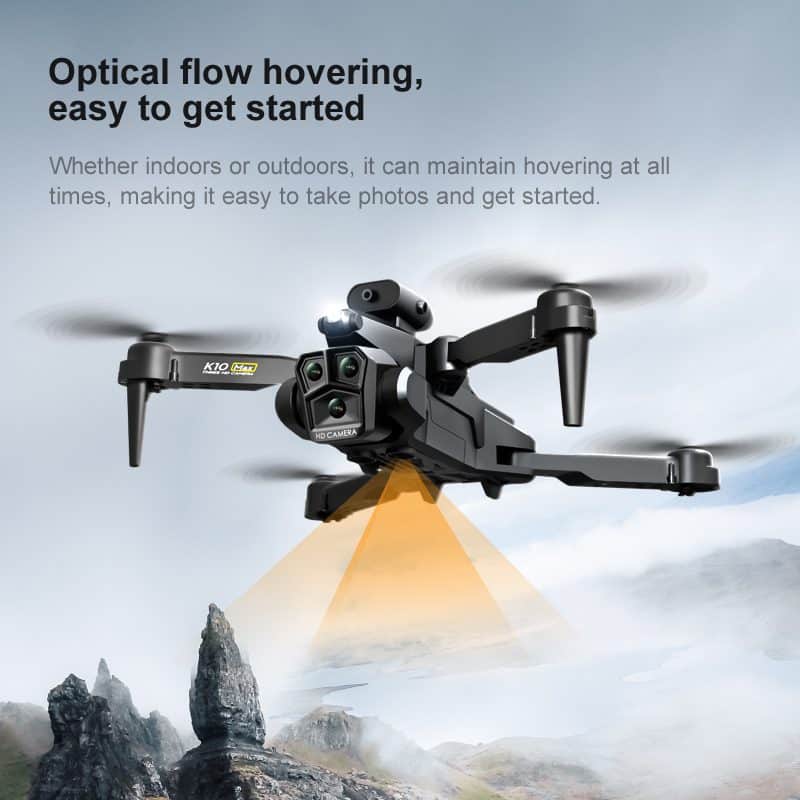 Drönaren K10MAX med tre kameror erbjuder exceptionell mångsidighet och möjliggör högupplöst filmning från flera perspektiv tack vare sitt avancerade system med tre linser. Den garanterar stabil och säker flygning med sitt optiska flygsystem och omfattande fyrvägs automatisk hinderundvikelse. Intelligenta funktioner som programmerbar flygbana och gestfotografering förenklar komplexa tagningar, medan 360°-stunts med ett klick ger dina bilder en dynamisk känsla. Med pålitlig HD-bildöverföring och kreativa verktyg som realtidsfilter och MV-produktion är den en idealisk allt-i-ett-lösning för både flygfotograferingsentusiaster och hobbyfotografer som söker intuitiv, funktionsrik prestanda.